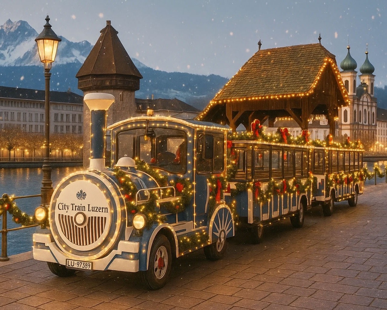 Sie mieten den ganzen Train. Der City Train bietet Platz für 54 Fahrgäste und wird in kalten Tagen beheizt.